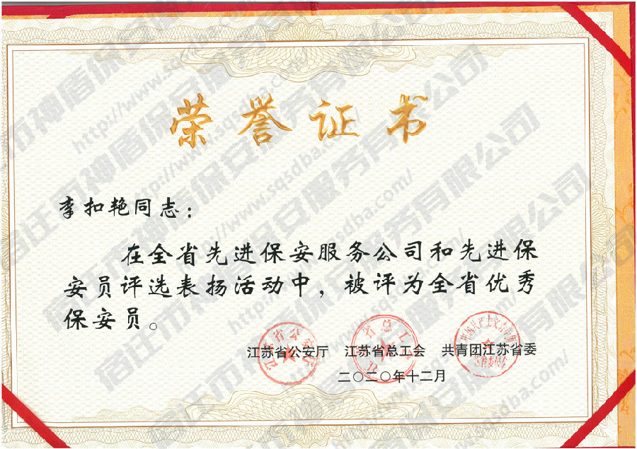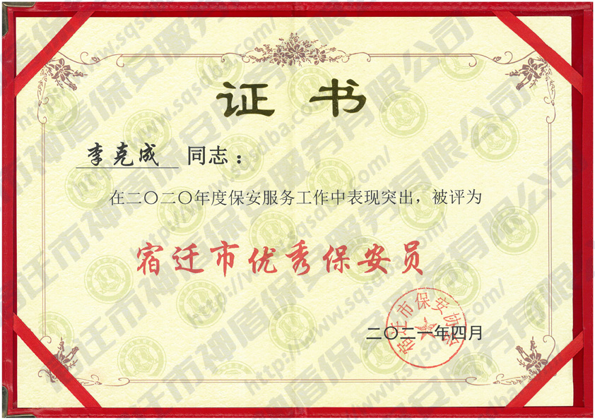 2020年度宿遷市優(yōu)秀保安員