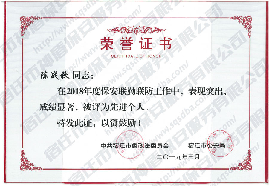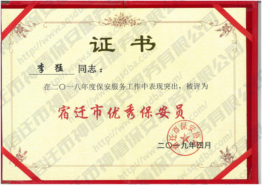 2018年度宿遷市優(yōu)秀保安員