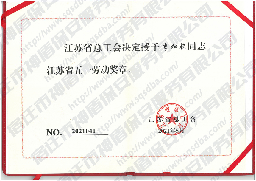 保安隊(duì)員李扣艷獲得"江蘇省五一勞