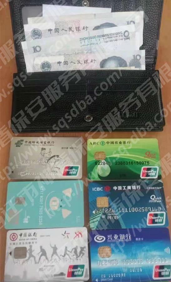 當(dāng)日上午7時(shí)許,宿遷市神盾保安服務(wù)有限公司派駐在寧宿徐高速公路泗洪西收費(fèi)站的保安江再保,巡查中發(fā)現(xiàn)路邊有一個(gè)黑色錢包。撿起來(lái)發(fā)現(xiàn)里面不僅有若干現(xiàn)金,還有銀行卡、身份證。此時(shí)四周無(wú)人,江再保趕緊將錢包上交給泗洪西收費(fèi)站值班室,希望能盡快查找線索,將錢包還給失主。