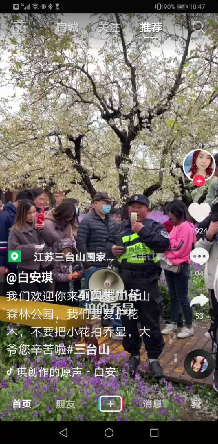 許昌朋用宿遷方言喊話勸導(dǎo)游客文明旅游:你上花地里干什么滴,你看那小花都給你“排喬顯”啊!每日都有成千上萬(wàn)名的游客慕名而來(lái),和“喬顯”保安大叔合影留念!