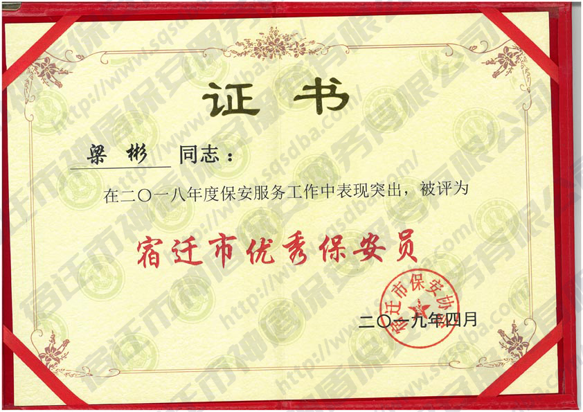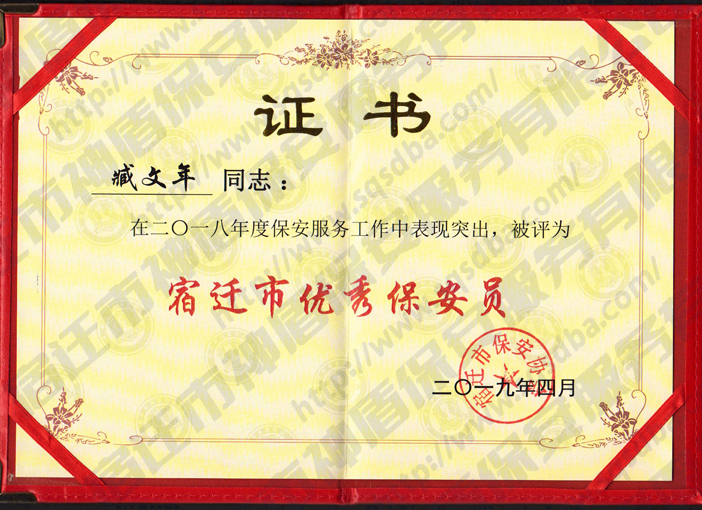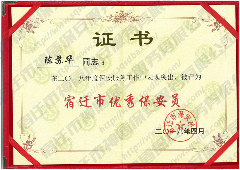 2018年度宿遷市優(yōu)秀保安員
