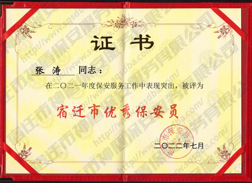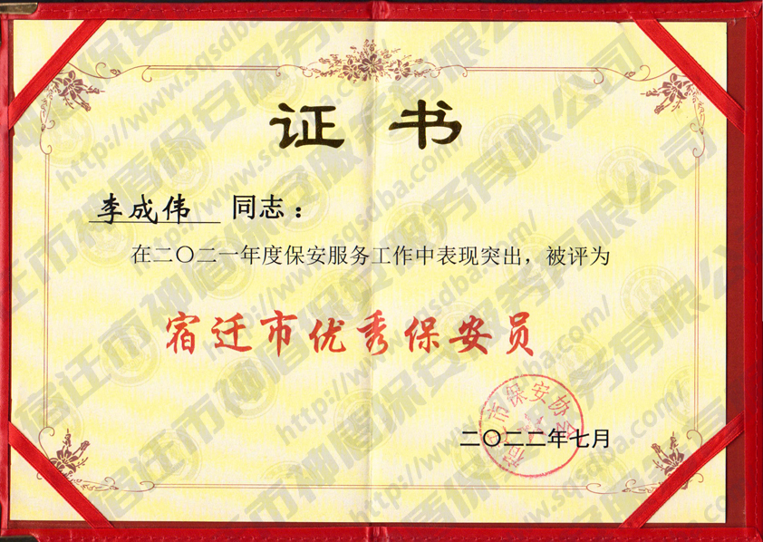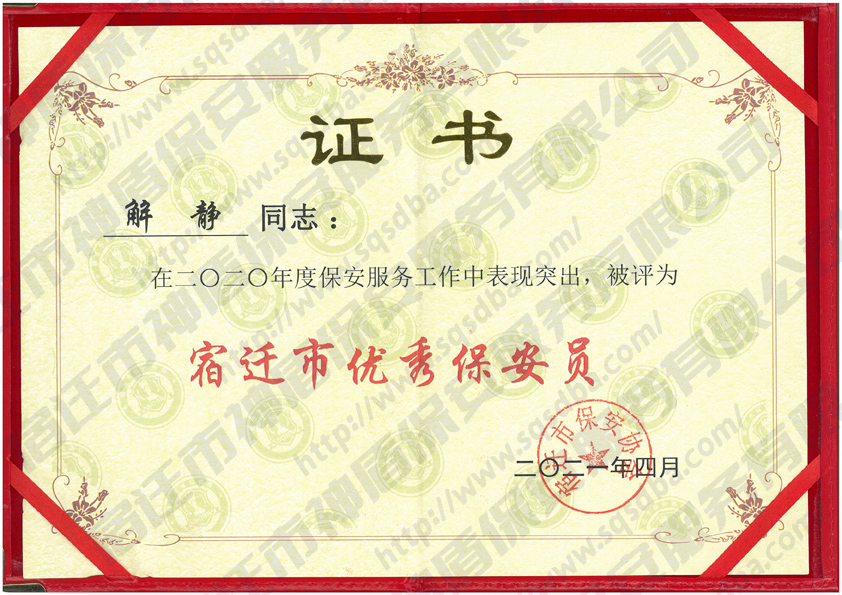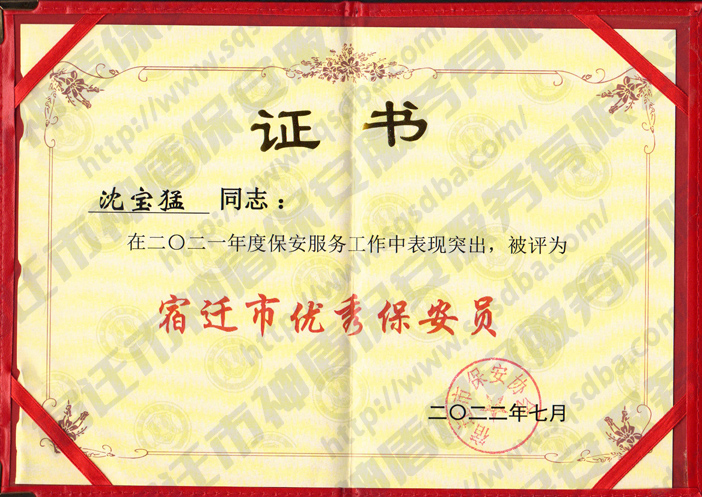 2021年度宿遷市優(yōu)秀保安員