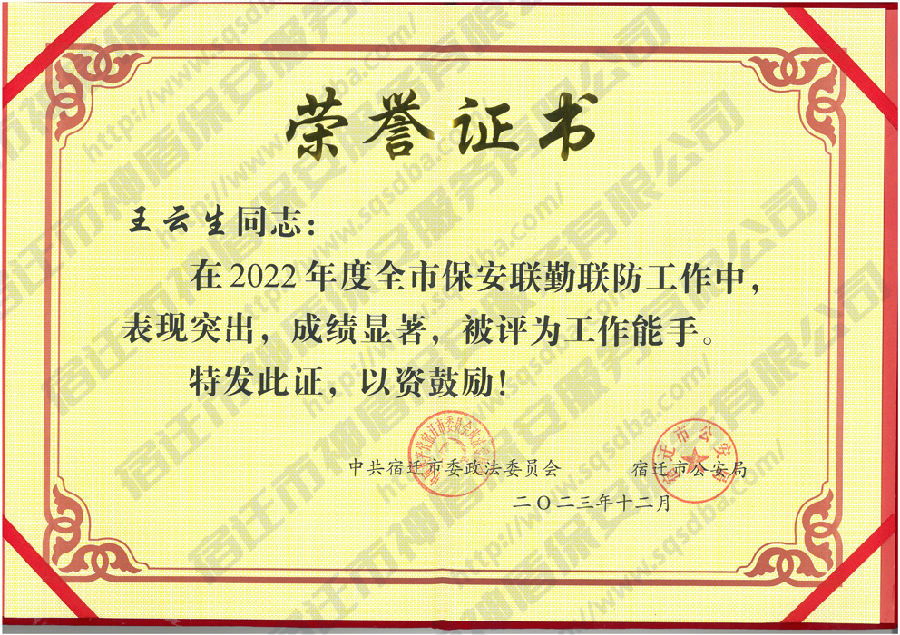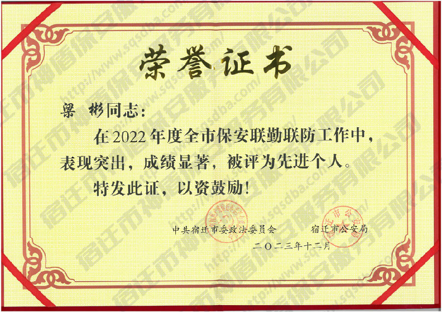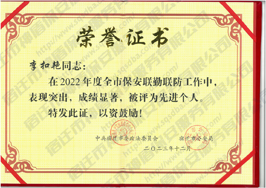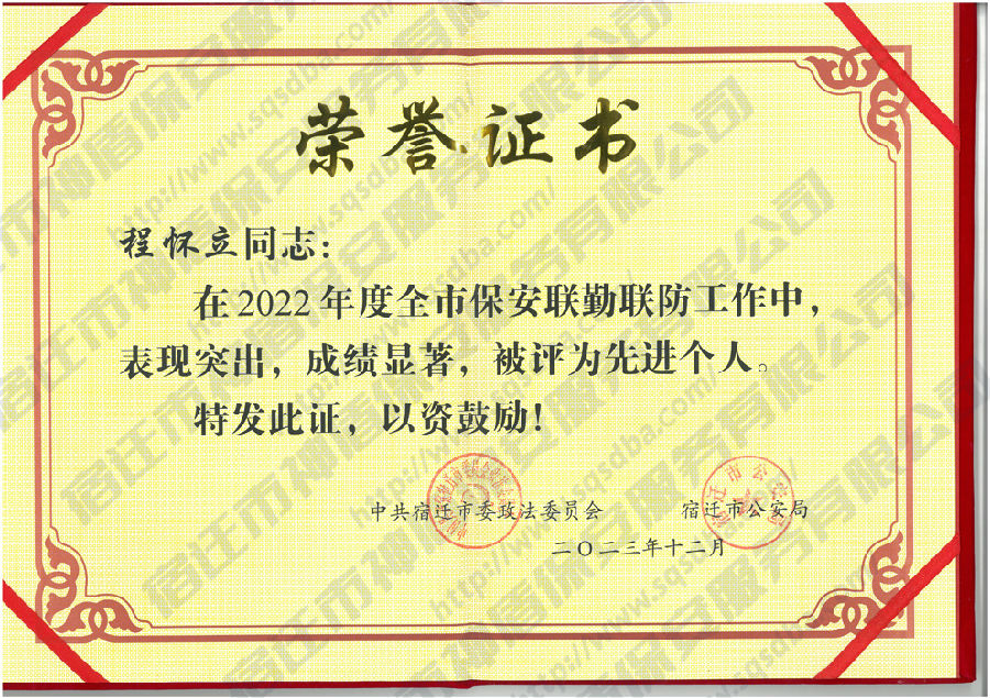 您所在位置:首頁 > 保安之星 > 2022年度聯(lián)勤聯(lián)防先進(jìn)個人