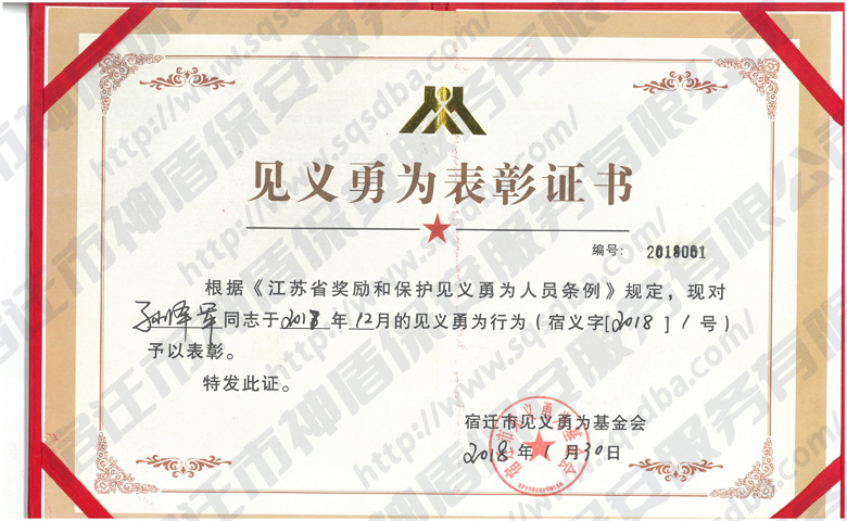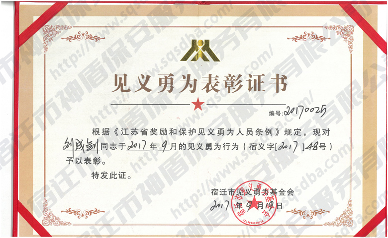 您所在位置:首頁(yè) > 保安之星 > 保安員見(jiàn)義勇為獲獎(jiǎng)證書(shū)