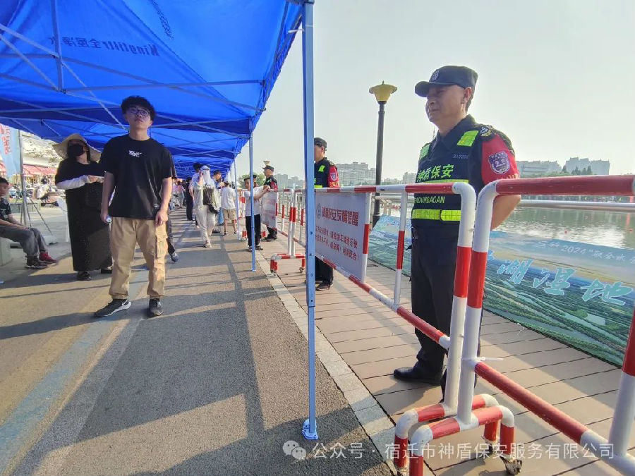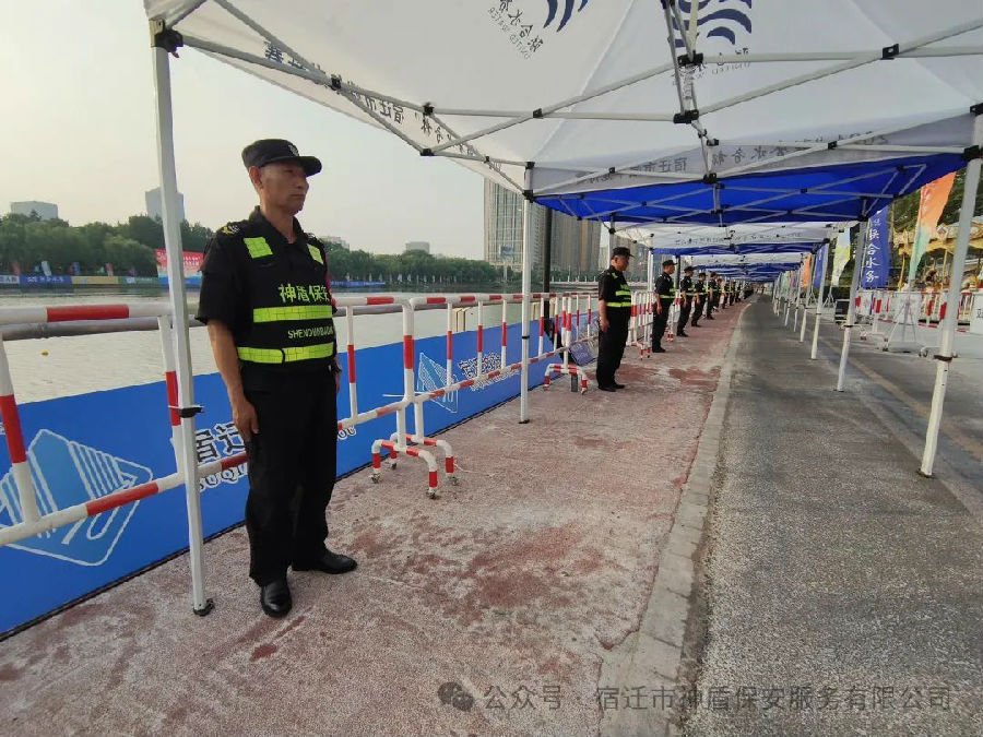 龍舟賽現(xiàn)場吸引了很多參賽運(yùn)動員和周邊龍舟愛好者,現(xiàn)場高峰時人流量超過數(shù)萬人。為了做好活動安保,公司領(lǐng)導(dǎo)進(jìn)行多次實(shí)地現(xiàn)場勘察,并做好充分準(zhǔn)備,抽調(diào)精兵強(qiáng)將,全力配合公安機(jī)關(guān)做好2024 “聯(lián)合水務(wù)杯”宿遷市端午龍舟賽活動安保工作,共出動保安隊(duì)員200余人,圓滿完成此次龍舟賽物品看護(hù)、舞臺、賽區(qū)周邊安全值守等現(xiàn)場秩序維護(hù)工作,確保本次活動完美收官。