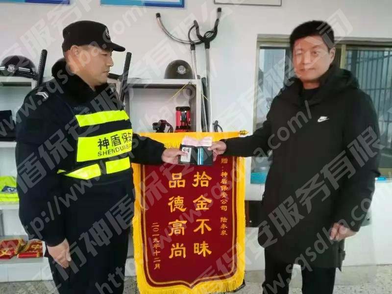 宿遷市神盾保安服務(wù)有限公司保安員拾金不昧獲贈(zèng)錦旗